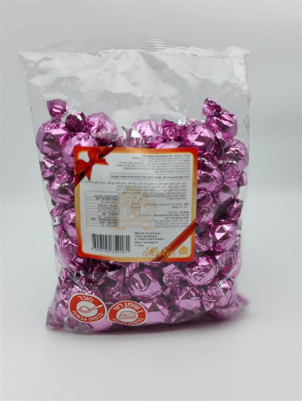 MELBON.שוקלד חלב ממולא תות ורוד מבריק 1ק"ג 6\1