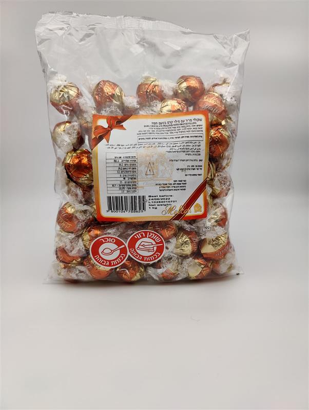 MELBON.שוקלד מריר ממולא קרם תפוז כתום 1ק"ג 6\1