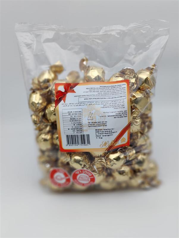 MELBON.שוקלד פרלין קרמל זהב מבריק 1ק"ג 6\1