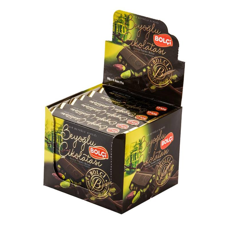 BOLCI.טבלה שוקלד מריר פיסטוק שלם 90 גרם 6\12\1